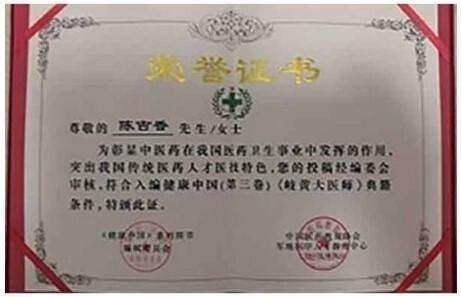 2018年被国家评选为全国中医药,华医头条影响力人物数据库杰出人物。